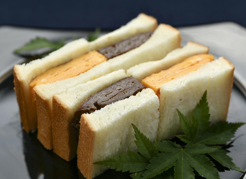 Chef Kimio Nonaga puts a twist on a classic Japanese sandwich by adding an unexpected ingredient to the omelet filling: cocoa. The chef suggested making two omelets, one plain and one featuring cocoa as a seasoning to give the sandwiches a pleasing visual contrast.