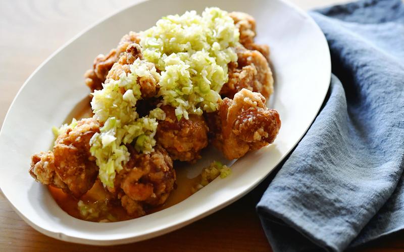My request to cooking expert Hitomi Tsutsumi was for a refreshing yet energizing dish. She shared this recipe for karaage fried chicken pieces with a naganegi Welsh onion sauce.