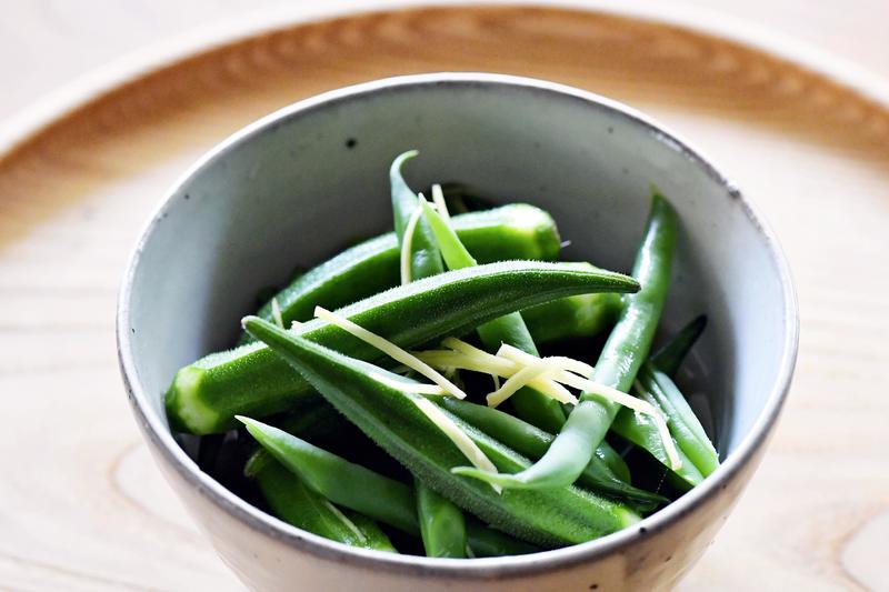 As a side dish, Tsutsumi recommended okra and string beans soaked in dashi broth.