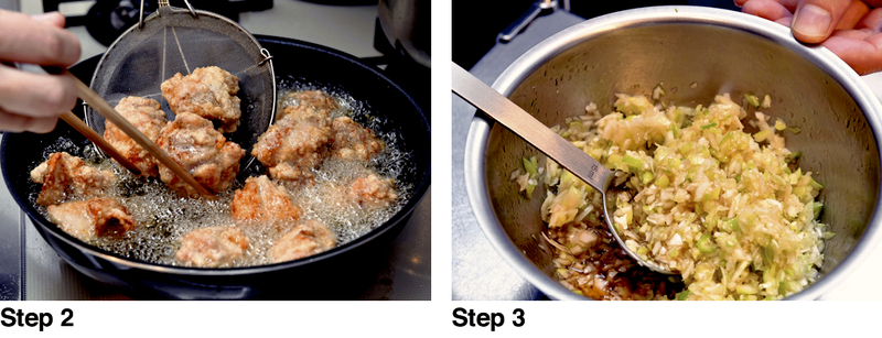 Recipe for karaage fried chicken with negi sauce