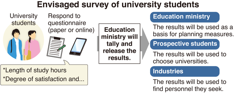 The ministry plans to release the survey results by university, thus spurring higher educational institutions that receive low evaluations from students to make improvements that will eventually enhance the quality of education. By enabling comparisons of universities and "visualizing" the satisfaction of students and other factors, the ministry expects the survey's findings will serve as a reference for prospective students when making their choice as well as for industries when seeking capable human resources.