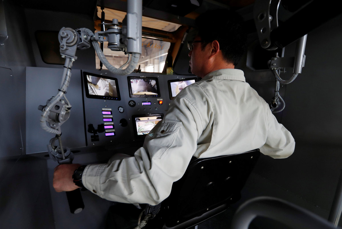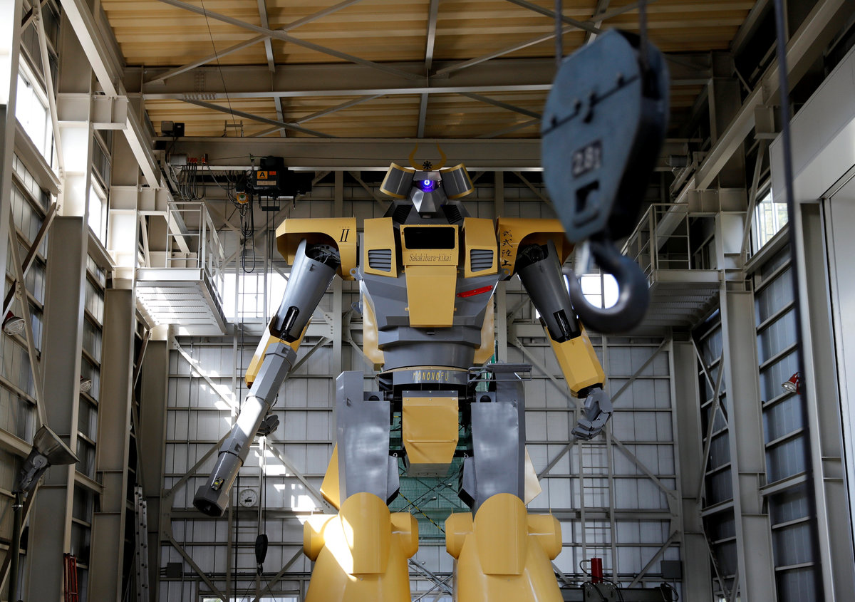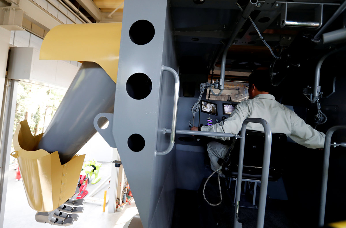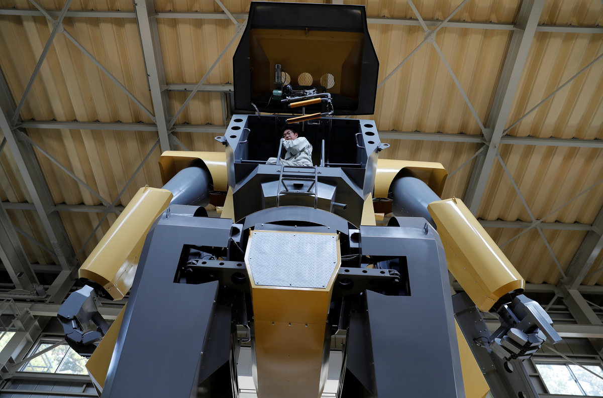 Sakakibara Kikai's engineer Masaaki Nagumo controls the bipedal robot Mononofu from its cockpit during its demonstration at its factory in Shinto Village, Gunma Prefecture, Japan, April 12, 2018. REUTERS/Kim Kyung-HoonSakakibara Kikai's bipedal robot Mononofu is pictured during its demonstration at its factory in Shinto Village, Gunma Prefecture, Japan, April 12, 2018. REUTERS/Kim Kyung-HoonSakakibara Kikai's engineer Masaaki Nagumo controls the bipedal robot Mononofu from its cockpit during its demonstration at its factory in Shinto Village, Gunma Prefecture, Japan, April 12, 2018. REUTERS/Kim Kyung-HoonSakakibara Kikai's engineer Masaaki Nagumo controls the bipedal robot Land Walker (L) next to Mononofu during its demonstration at its factory in Shinto Village, Gunma Prefecture, Japan, April 12, 2018. REUTERS/Kim Kyung-HoonSakakibara Kikai's engineer Masaaki Nagumo controls the bipedal robot Land Walker during its demonstration at its factory in Shinto Village, Gunma Prefecture, Japan, April 12, 2018. REUTERS/Kim Kyung-Hoon