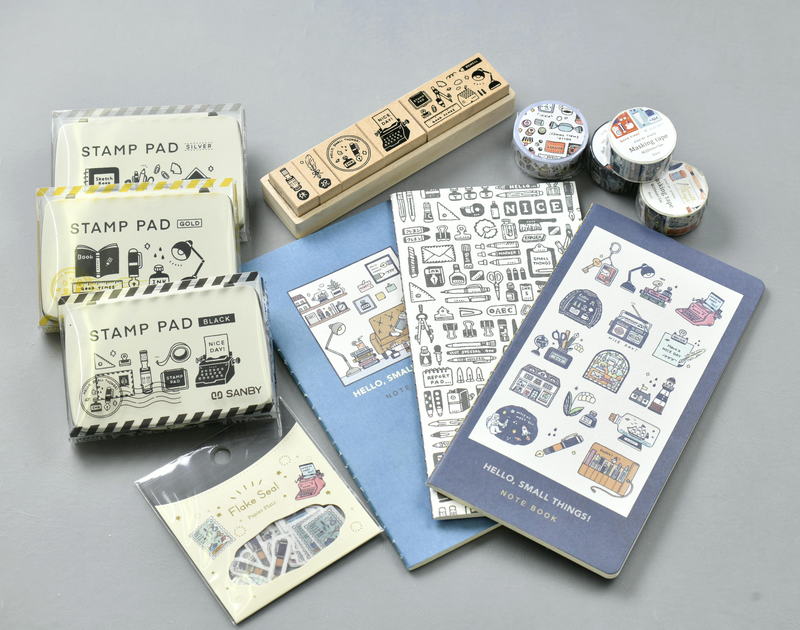 Quick-drying ink is recommended. The artist's favorite color is navy, which she likes because it mellows out the overtly cute nature of eraser stamps. If eraser stamps are applied to smooth paper, their imprints will come out clearly.