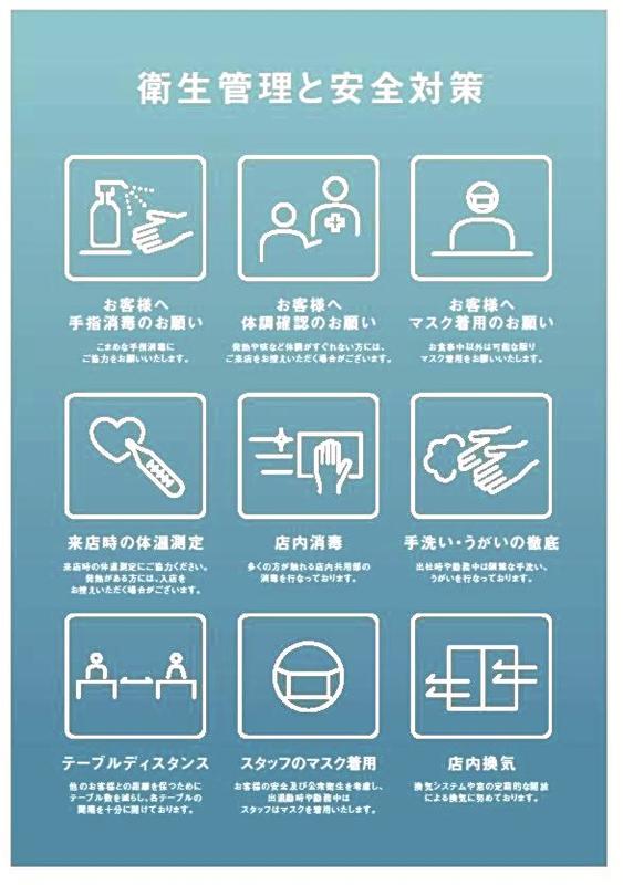 High-end restaurant chain Hiramatsu Inc. has also started offering free original pictograms, which indicate users ventilate and disinfect their premises. The company also allows users of their pictograms to change wording. "We made this with the thought of overcoming [difficulties of the coronavirus] with everyone." a company official said.
