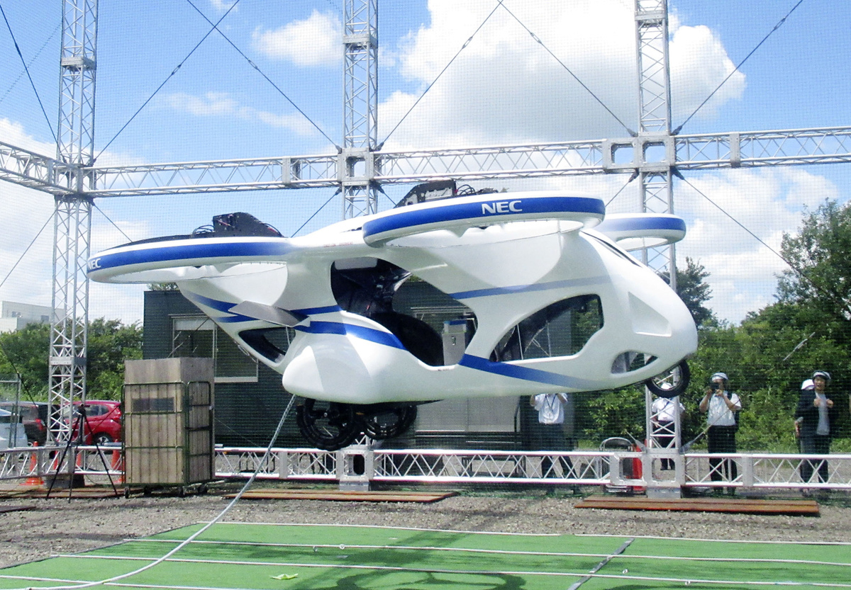 (Reuters) - Japanese electronics manufacturer NEC Corporation unveiled a prototype flying car that stayed in the air for almost a minute during a test in Japan this week.