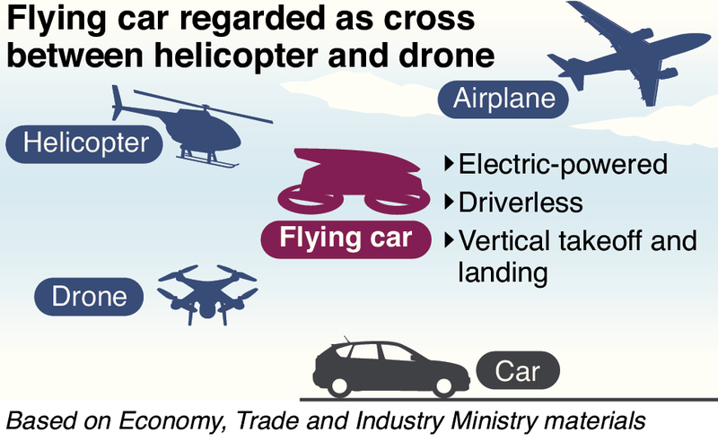 In a bid to achieve the practical use of self-driving flying cars (see below) in the 2020s, the government will establish a public-private council possibly within this year to discuss safety issues, technological development and other matters, The Yomiuri Shimbun has learned.
