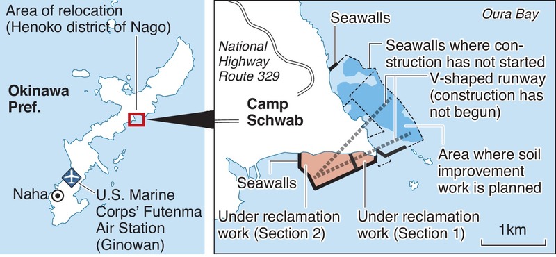In order to start the work, it is necessary to apply for a change in the design of the reclamation work with Okinawa Gov. Denny Tamaki and to receive approval. In 2013, when then Okinawa Gov. Hirokazu Nakaima approved the reclamation, this ground improvement work was not expected.
