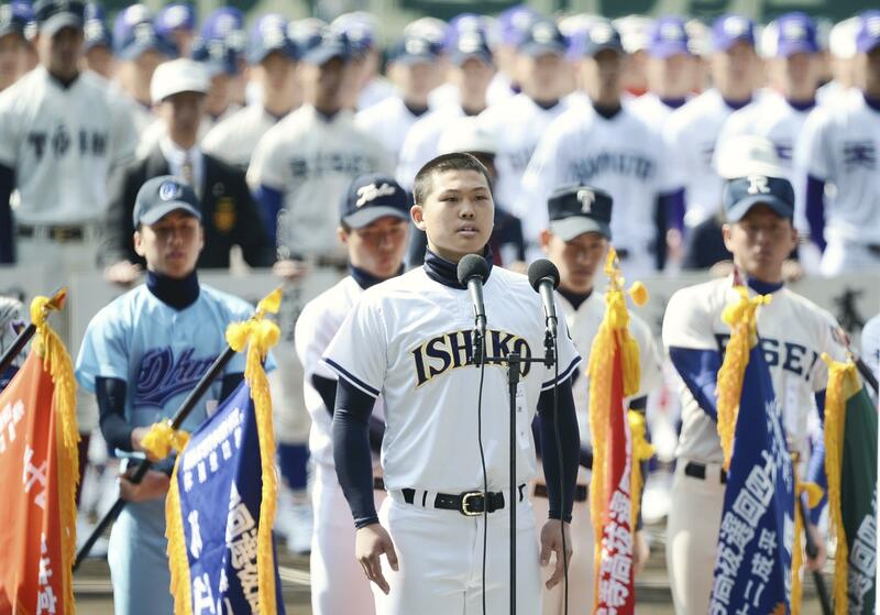 Adding to the attention already showered on a school from the disaster area appearing in the tournament, Abe was selected at random to give the players' oath. Seeking advice from his teammates on what to say, they bandied about words like "smile," "gratitude" and "bond."