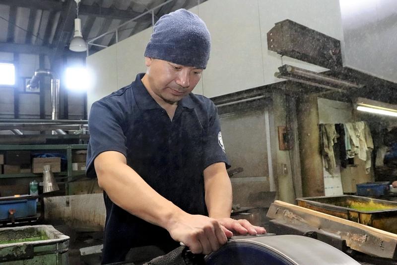 The trio behind the chiffon cake knife are Yuji Totani, a sharpener who works at the Takefu Knife Village workshop in Echizen in the prefecture, which is home to traditional knife production; designer Hiroo Okubo; and Hiroshi Watanabe, a representative of Snowcafe, a chiffon cake specialty cafe in Fukui city.