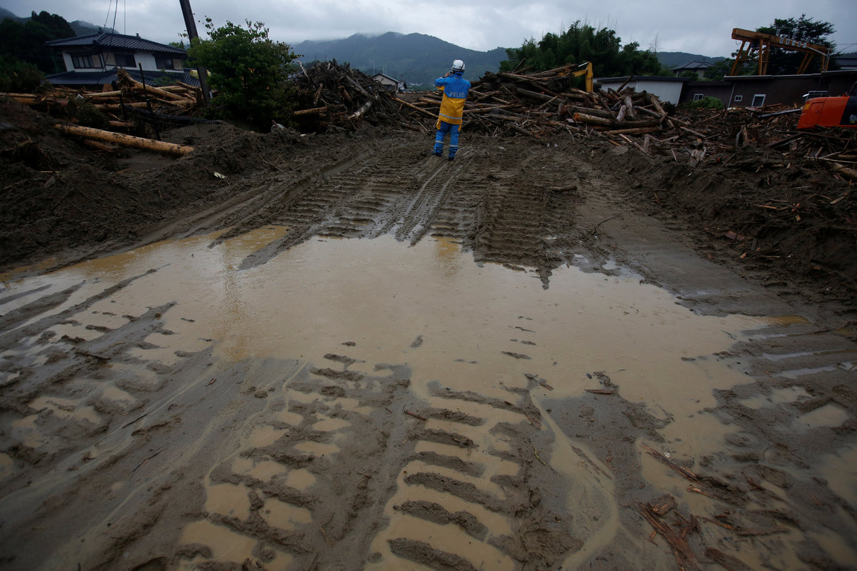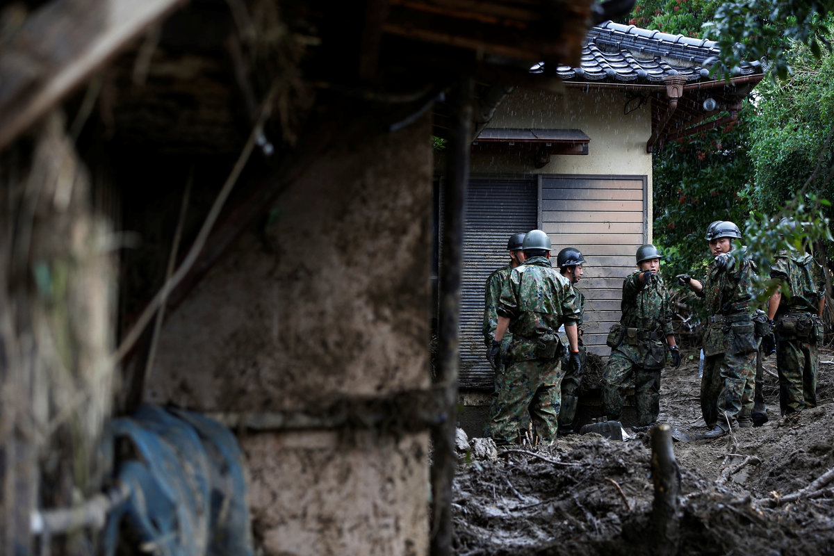 Torrential rain that began a week ago set off landslides and sent rivers surging over their banks on the southwestern island of Kyushu, at one point forcing more than 400,000 people from their homes.