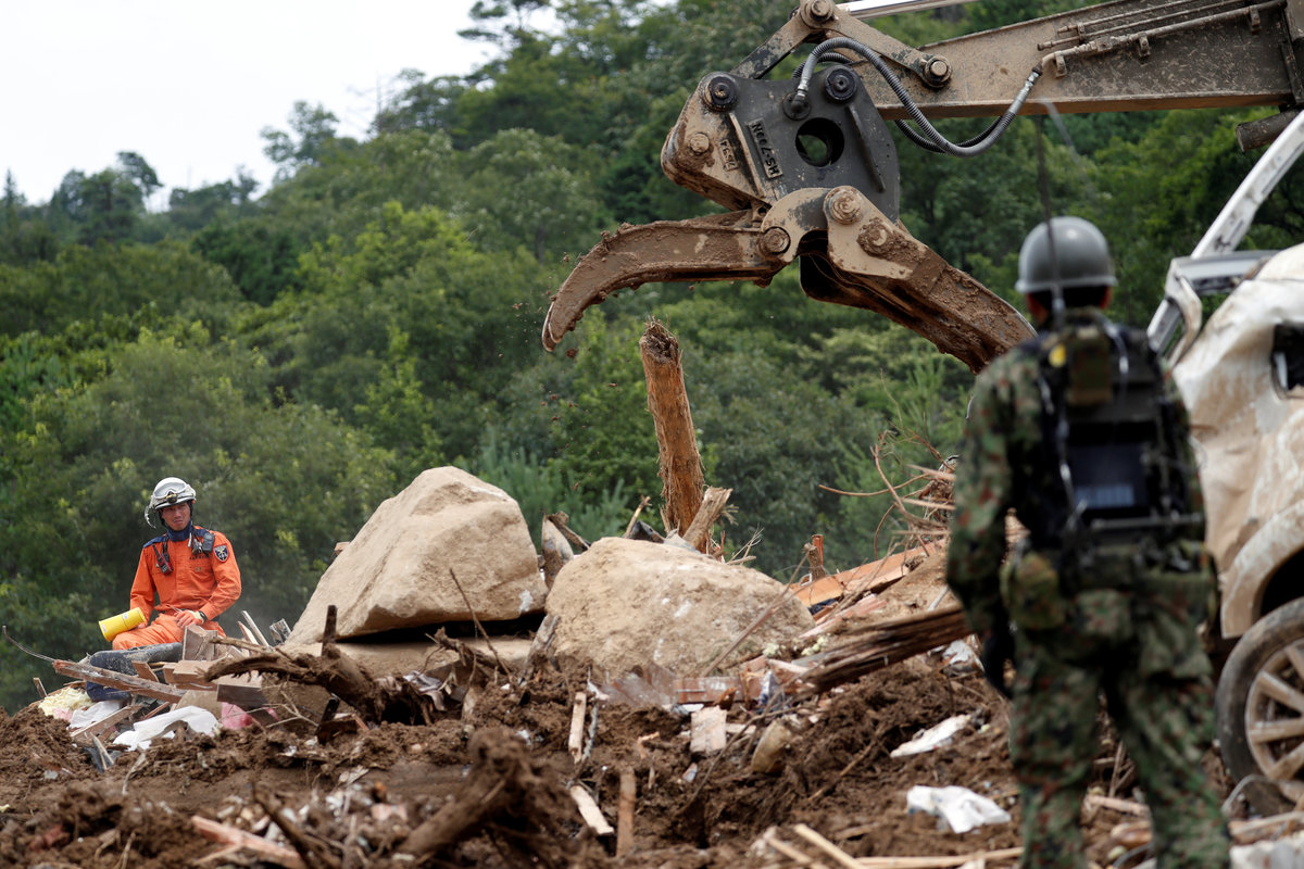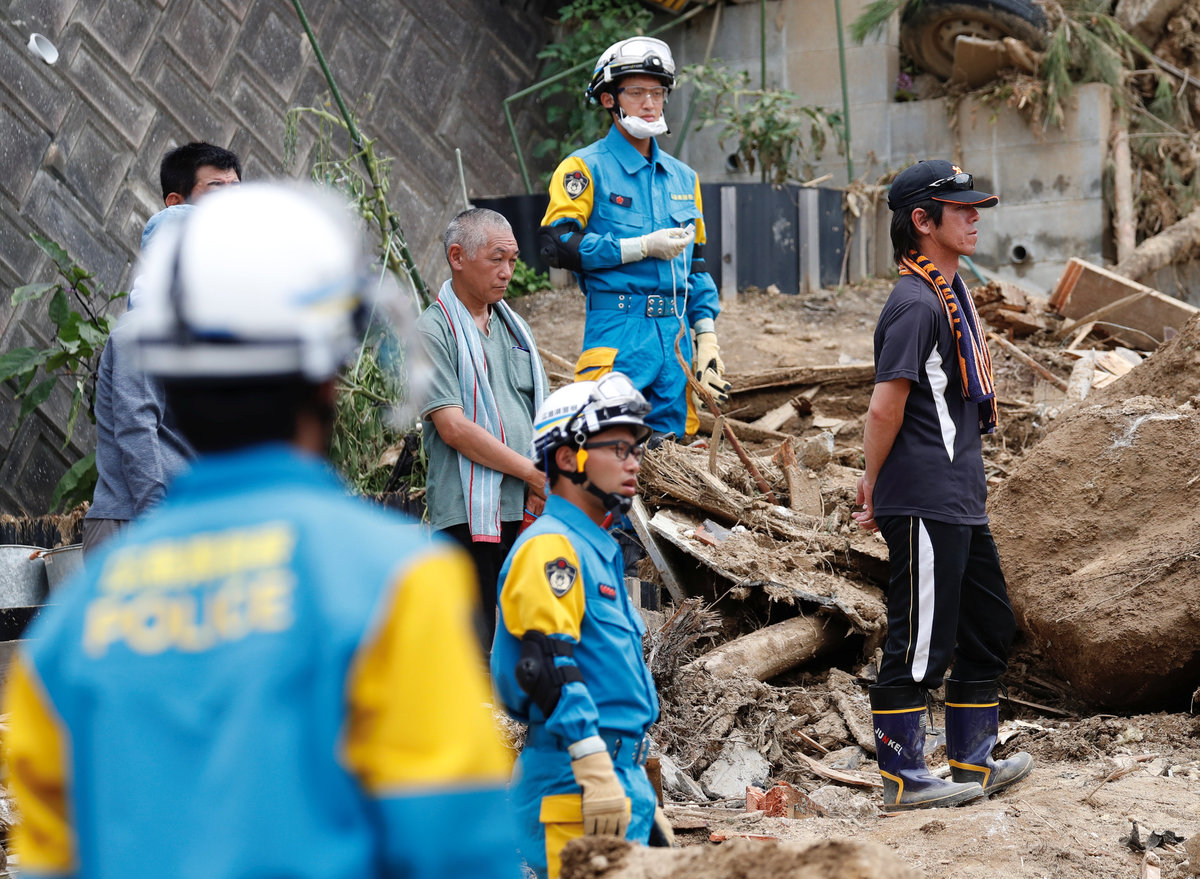 In Kumano, a mountainside community in Hiroshima prefecture that was hit by a landslide last week, Ken Kirioka anxiously watched rescuers toiling through mud, sand and smashed houses to find the missing, including his 76-year-old father, Katsuharu.