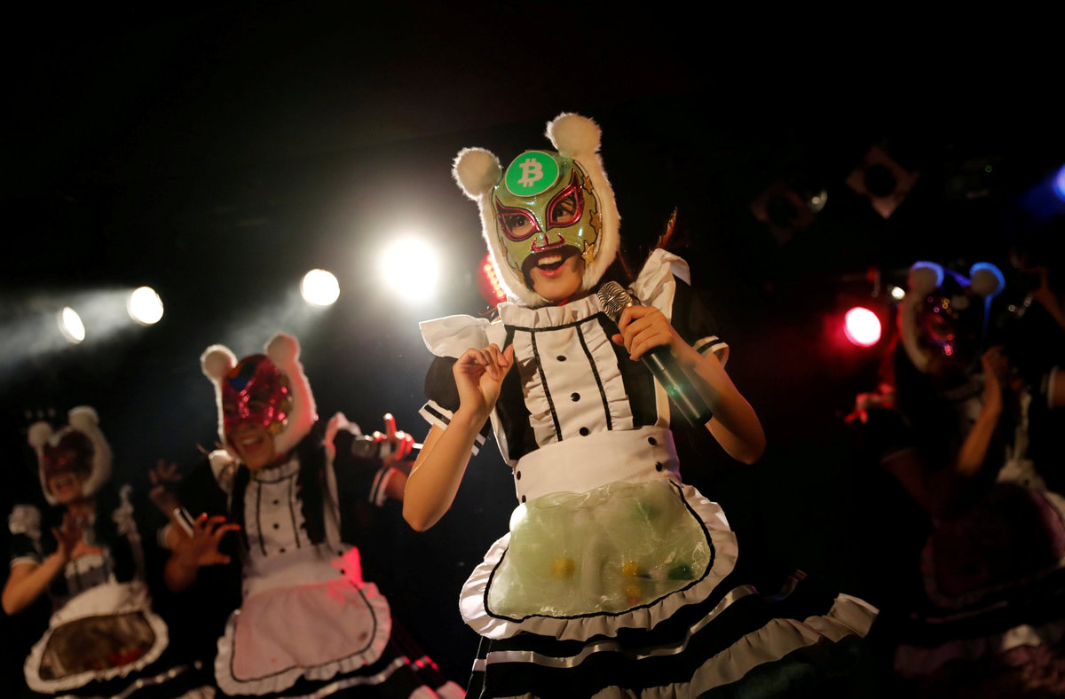 In their debut, the eight "Virtual Currency Girls", or Kasotsuka Shojo in Japanese, cavorted in maid costumes with frilly skirts and full-face professional wrestling-style masks with fuzzy pom-pom ears, extolling the virtues of decentralized digital currencies such as bitcoin.
