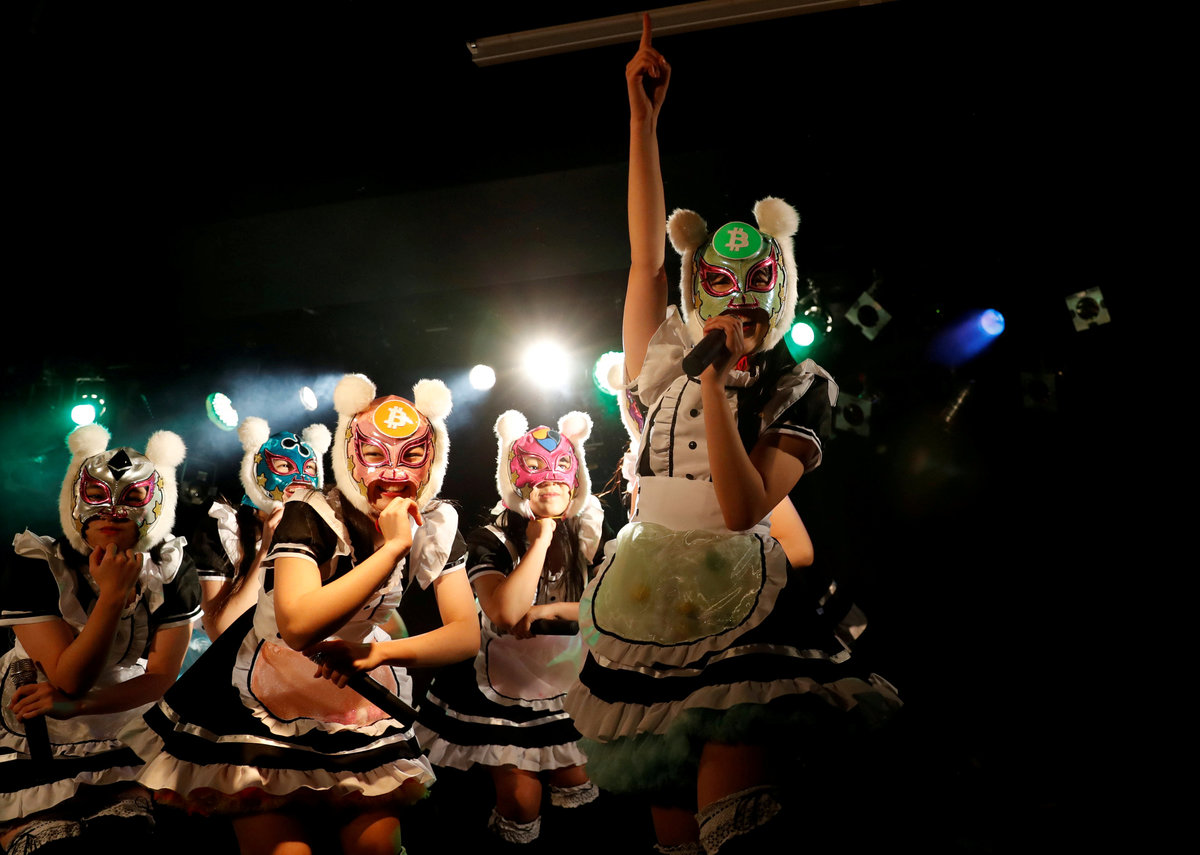 The maid costumes aimed to raise the group's popularity with the use of a globally recognizable "uniform," she added. Naturally, all merchandise sold at the venue is paid for in bitcoin, as are concert tickets and the members' salaries.