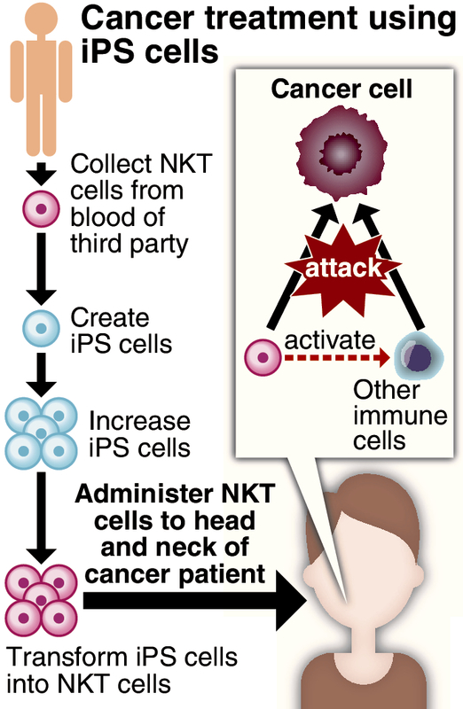 The therapy involves the team producing natural killer T (NKT) cells using iPS cells from healthy third parties. Then the NKT cells will be injected into a blood vessel leading to the patient's cancer-affected area.