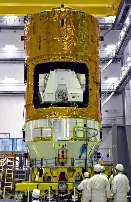 The Japan Aerospace Exploration Agency has unveiled the Kounotori 7 unmanned cargo transporter, which is scheduled to be launched from the Tanegashima Space Center in Kagoshima Prefecture on Sept. 11.