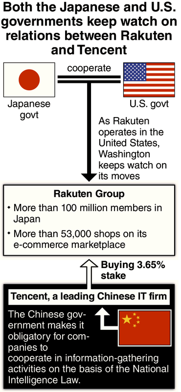 Tencent is one of China's leading IT firms, as powerful as Alibaba Group Holding Ltd. The Chinese government makes it obligatory for companies and other entities to cooperate in information-gathering activities, on the basis of the country's National Intelligence Law. Thus, there are concerns over possible leakage of private information owned by Rakuten to China.