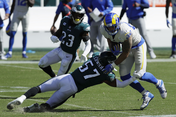 It appeared Goff might have another chance when the defense forced the Eagles to punt with just over a minute left. But Kupp caught the ball inside the 10-yard line and fumbled when he was hit by T.J. Edwards.