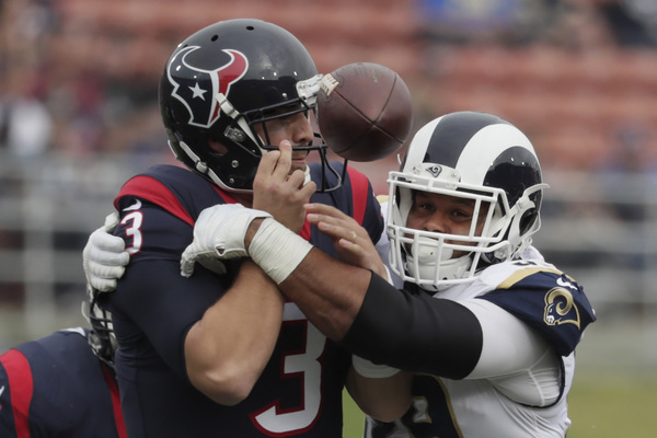 On the ensuing series, Ebukam sacked Savage and forced a fumble that was recovered by the Rams at the Texans' 12.