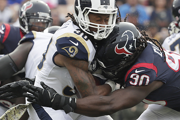 With Texans defensive lineman Jadeveon Clowney wreaking havoc, the Rams' offense repeatedly stalled. Johnny Hekker, who punted only twice in each of the Rams' last two games, exceeded that total by early in the second quarter.