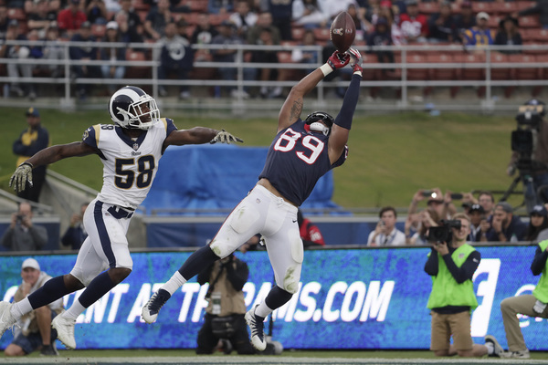 After the Texans missed a field-goal attempt early in the second quarter, Gurley turned a screen pass into a 43-yard gain and then broke off a 15-yard run to give the Rams a first down at the 13.