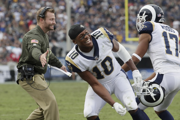 Later in the quarter, Goff fired a 24-yard pass to Watkins, and then connected on a catch-and-run that Watkins turned into a 17-yard touchdown and 23-7 lead.