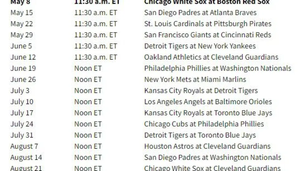 Part of the deal is partial exclusivity. The first six broadcasts in the package begin at 10:30, and the rest begin at 11. No other MLB broadcast that day can start until 12:30 p.m.