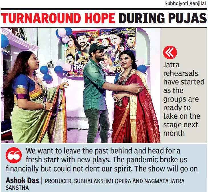 KOLKATA: The jatra para is abuzz with activities now that full-fledged rehearsals are on before the performers take on the stage next month. The organizers have their turnaround hopes pinned on the upcoming festive season. The preparations started after chief minister Mamata Banerjee announced that performances at open-air theatres, including jatra, could be resumed, but with not more than 50% occupancy at a time