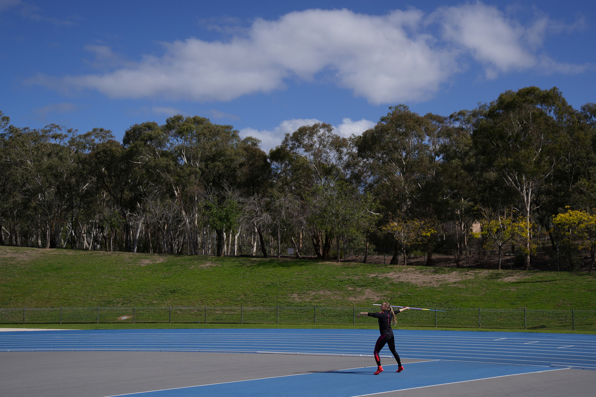 Javelin world champion Kelsey-Lee Barber trains for the postponed Tokyo Olympic Games, utilising limited facilities access under the coronavirus disease (COVID-19) restrictions at the Australian Institute of Sport (AIS), in Canberra, Australia, April 21, 2020. Picture taken April 21, 2020. REUTERS/Loren Elliott