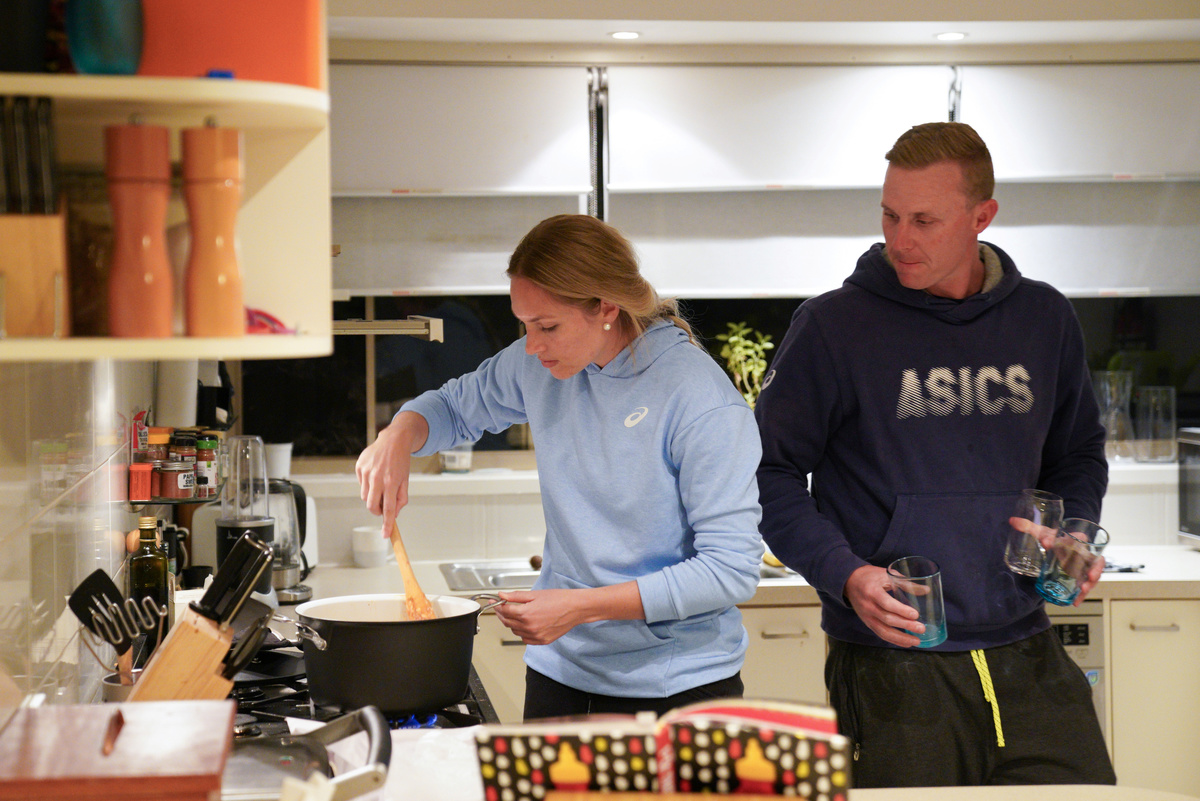 Javelin world champion Kelsey-Lee Barber (R) drinks coffee and takes a walk with mother Bev Roberts due to cafes only being open for take-away amidst the spread of the coronavirus disease (COVID-19), following a training session geared toward the postponed Tokyo Olympic Games, in Canberra, Australia, April 21, 2020. Picture taken April 21, 2020. REUTERS/Loren ElliottJavelin world champion Kelsey-Lee Barber trains for the postponed Tokyo Olympic Games with coach and husband Mike Barber, utilising limited facilities access under the coronavirus disease (COVID-19) restrictions at the Australian Institute of Sport (AIS), in Canberra, Australia, April 21, 2020. Picture taken April 21, 2020. REUTERS/Loren ElliottJavelin world champion Kelsey-Lee Barber trains for the postponed Tokyo Olympic Games, utilising limited facilities access under the coronavirus disease (COVID-19) restrictions at the Australian Institute of Sport (AIS), in Canberra, Australia, April 21, 2020. Picture taken April 21, 2020. REUTERS/Loren ElliottJavelin world champion Kelsey-Lee Barber orders coffee at a cafe only open for take-away amidst the spread of the coronavirus disease (COVID-19) after a training session geared toward the postponed Tokyo Olympic Games, in Canberra, Australia, April 21, 2020. Picture taken April 21, 2020. REUTERS/Loren ElliottJavelin world champion Kelsey-Lee Barber trains for the postponed Tokyo Olympic Games with coach and husband Mike Barber, utilising limited facilities access under the coronavirus disease (COVID-19) restrictions at the Australian Institute of Sport (AIS), in Canberra, Australia, April 21, 2020. Picture taken April 21, 2020. REUTERS/Loren ElliottJavelin world champion Kelsey-Lee Barber prepares lunch at home following a training session geared toward the postponed Tokyo Olympic Games amidst the spread of the coronavirus disease (COVID-19), in Canberra, Australia, April 21, 2020. Picture taken April 21, 2020. REUTERS/Loren ElliottJavelin world champion Kelsey-Lee Barber spends time at home with husband and coach Mike Barber following a training session geared toward the postponed Tokyo Olympic Games amidst the spread of the coronavirus disease (COVID-19), in Canberra, Australia, April 21, 2020. Picture taken April 21, 2020. REUTERS/Loren ElliottJavelin world champion Kelsey-Lee Barber prepares dinner at home with husband and coach Mike Barber following a training session geared toward the postponed Tokyo Olympic Games amidst the spread of the coronavirus disease (COVID-19), in Canberra, Australia, April 21, 2020. Picture taken April 21, 2020. REUTERS/Loren ElliottJavelin world champion Kelsey-Lee Barber trains at a public park near her home with husband and coach Mike Barber, as the two continue preparations for the postponed Tokyo Olympic Games amidst the spread of the coronavirus disease (COVID-19), in Canberra, Australia, April 22, 2020. Picture taken April 22, 2020. REUTERS/Loren Elliott