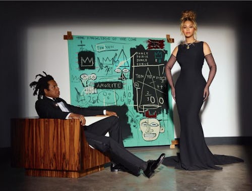 Jay-Z and Beyonce are too rich to not make history and controversy at the same time. As part of luxury jeweler Tiffany & Co's "ABOUT LOVE" campaign, Jay-Z and Beyonce pose in front of a never-before-seen painting from Jean-Michel Basquiat's private collection, a decision that is as historic as it is controversial.