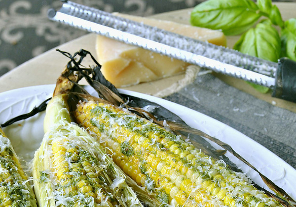 My favorite way to grill corn is the easiest way, in the husk. Soak the unshucked ears in water to cover for at least 15 to 20 minutes, remove corn from water and shake off excess. Place corn on the hot grill grates (heat should be medium-high), close cover and grill for 20 minutes, turning every five minutes or so until the corn is tender when pierced with the tip of a knife. Pull the husks back before serving (the silks will come right off). The husks will get black, but no worries! The corn inside will stay moist.