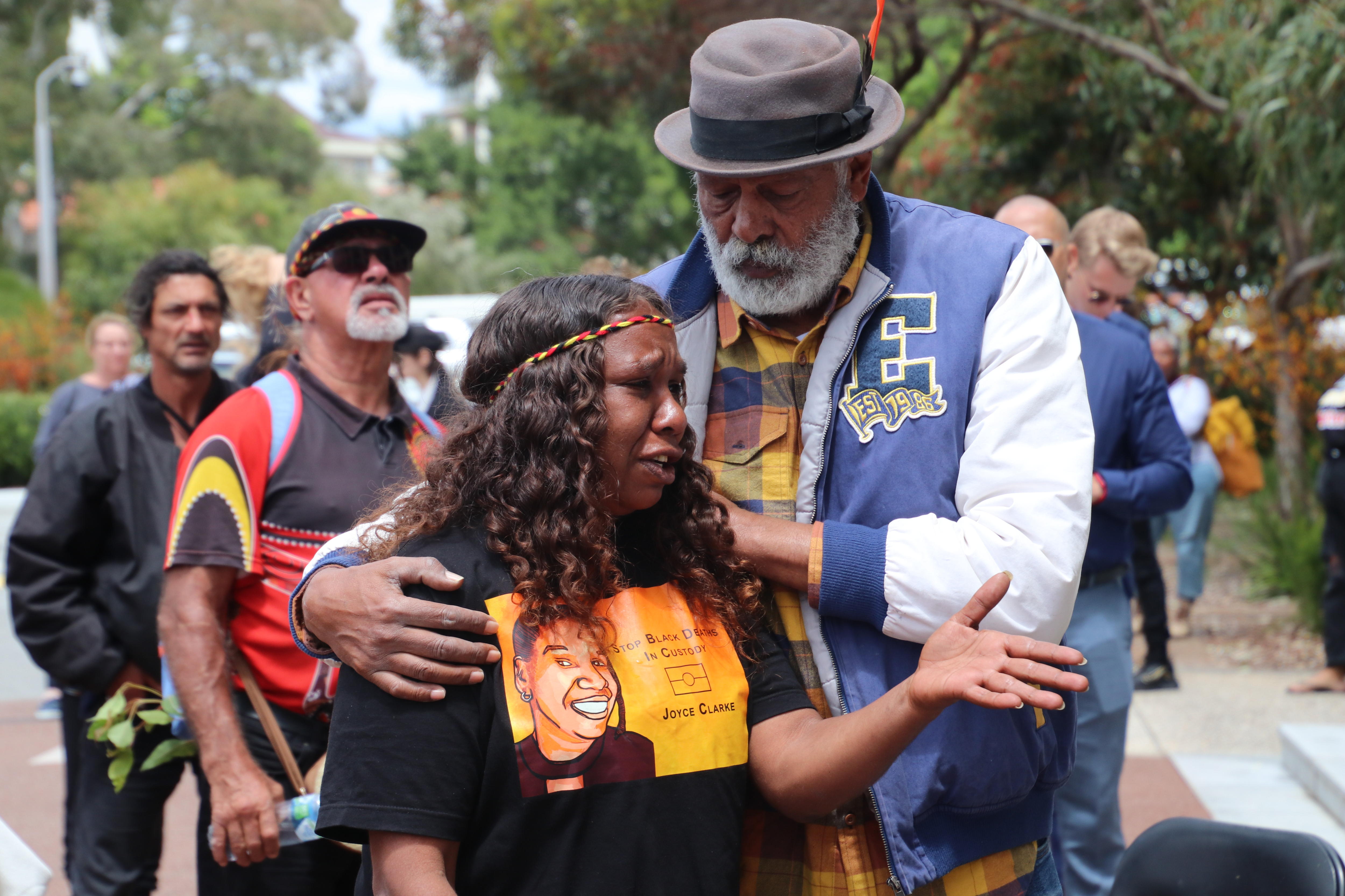 She and other speakers referred to other Aboriginal people who have died in custody in Western Australia, including 16-year-old John Pat, who died after being beaten by off-duty police officers, Mr Ward who died in the back of a police van in 47C heat, and Ms Dhu, a young Yamatji woman who died from sepsis from a broken rib after being held in police custody over unpaid fines.