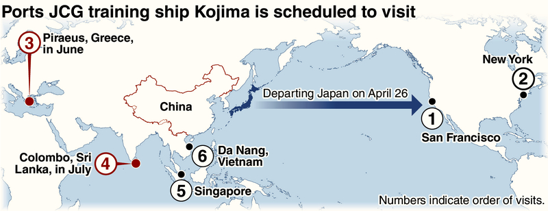 The visits are to be made by the Kojima, a training ship with a crew of about 50, including Japan Coast Guard Academy graduates.