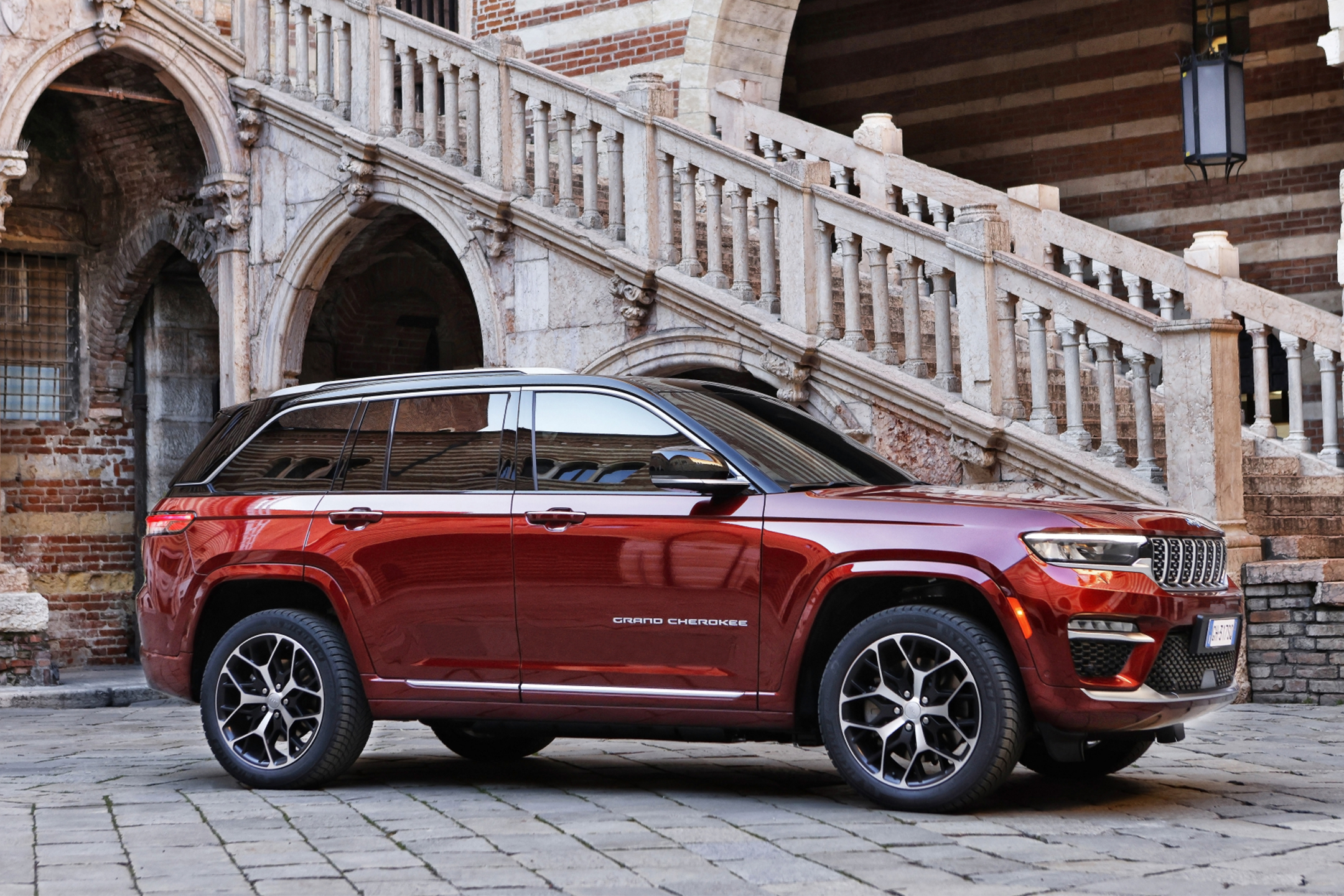The Grand Cherokee’s 17.3kWh battery can be fully charged via a home wallbox in about four hours, or in one hour, 40 minutes if using a public charger.