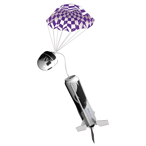 According to Estes’ product description page, its New Shepard miniature is a pretty simple DIY project, taking only 10 minutes to complete. Enthusiasts can launch the rocket roughly 400-feet into the air, which sounds pretty cool. Its parachute ensures a soft landing for reuse, as is the case with most of these kinds of toys. Still, there’s no avoiding the fact that it, unfortunately (but as advertised), looks very much like Blue Origin’s New Shepard rocket, which is to say, it looks like a big ol’ beefy boy part.