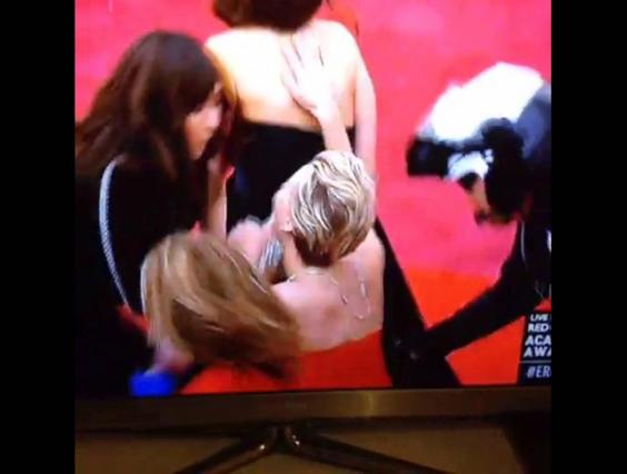 Simpson is the pal Lawrence took as her date to the Academy Awards and grabbed by the neck as she took her second tumble at the awards ceremony. She wrote a memorable blog about her experience and going viral after being unceremoniously dragged down by her friend.