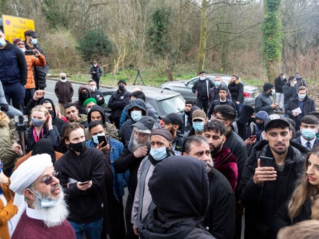 At the school, people gathered around the gates amid shouts of “get the head teacher”, although there were no arrests or fines issued for breaches of the coronavirus restrictions.