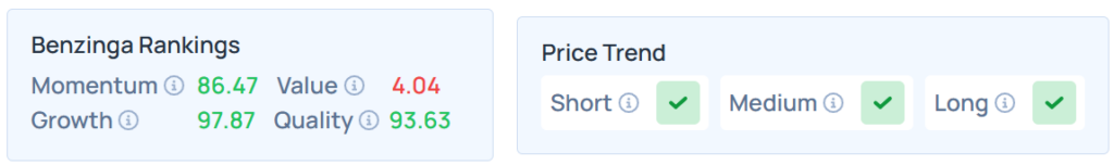 Benzinga's Edge Stock Rankings indicate that NVDA maintains a stronger price trend in the short, medium, and long terms. However, the stock's value ranking is relatively poor. Additional performance details are available here.