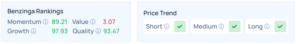 Benzinga’s Edge Stock Rankings place NVDA in the 97th percentile for Growth and 93rd for Quality, highlighting the chipmaker’s robust performance compared to rivals.