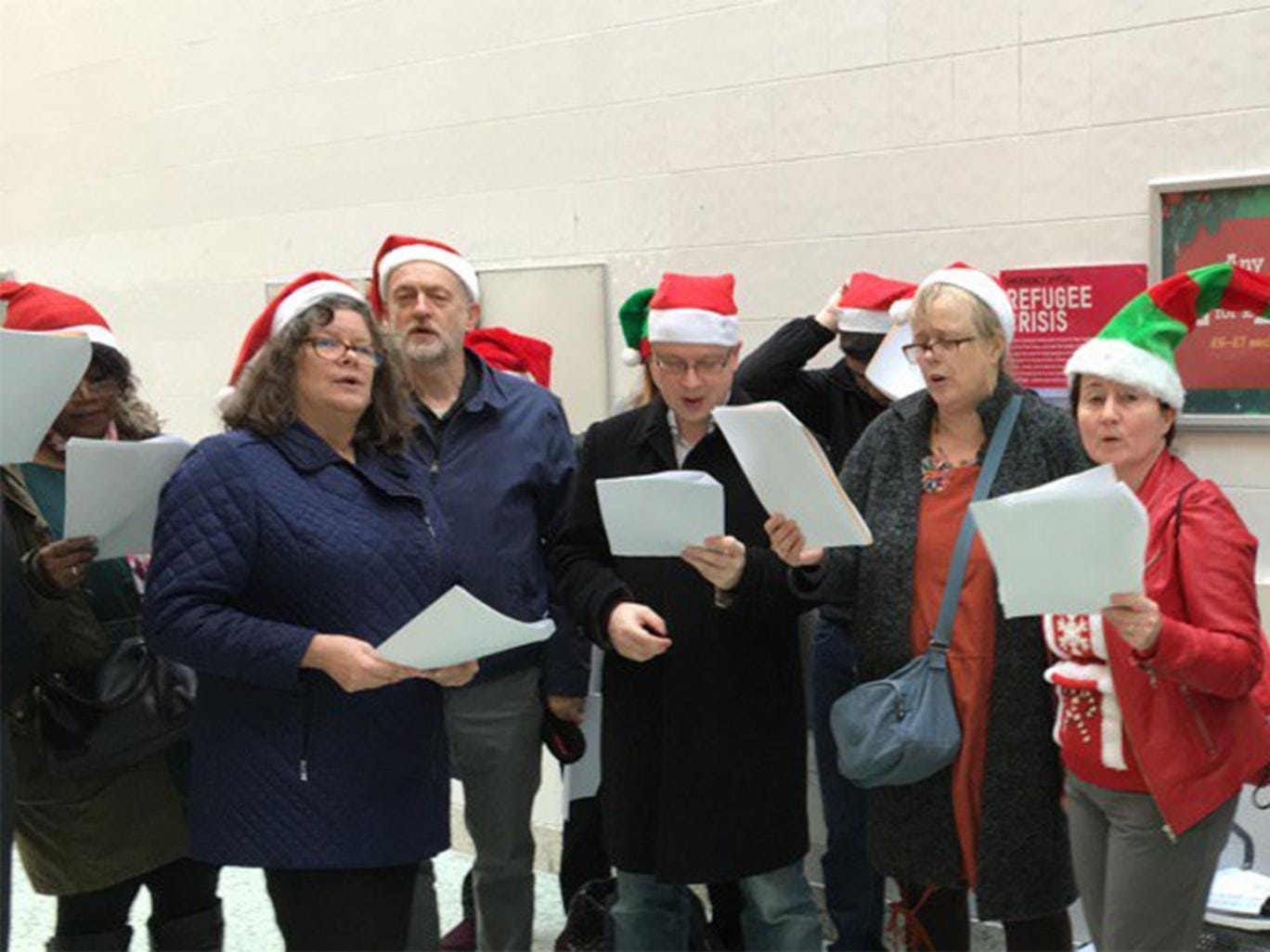 Mr Corbyn joined Labour councillors and activists at the Nag’s Head shopping centre in Islington, where they were also met by the Game of Thrones actor Finn Jones for a rendition of Silent Night.