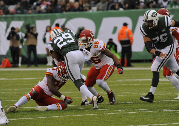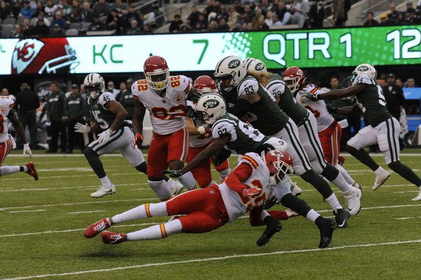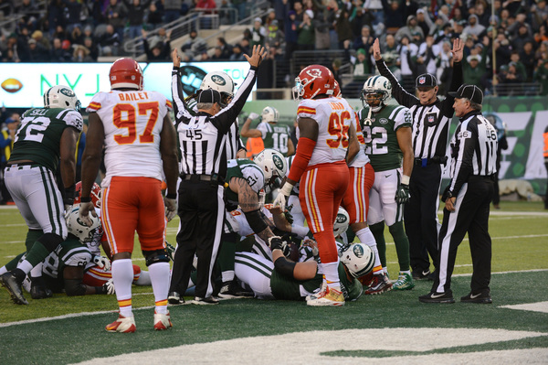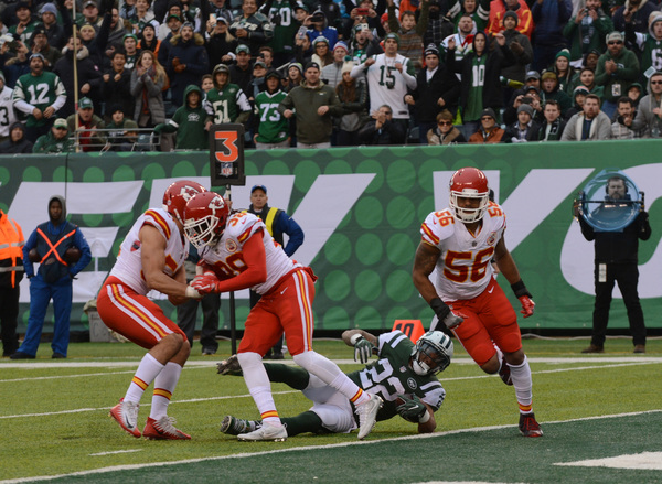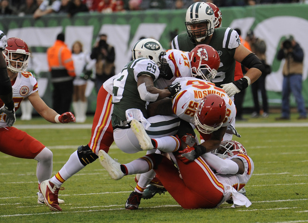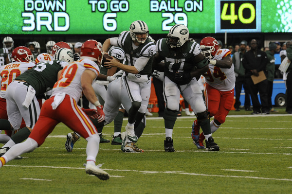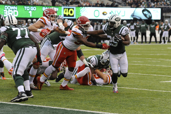 The Jets were forced to kick a field goal from the 7-yard line after Bilal Powell was dropped short of the end zone. But the Chiefs were called for unnecessary roughness on Catanzaro's attempt, and the Jets received a fresh set of downs. Later, on 3rd-and-4, Kansas City gifted the Jets another first down on a defensive holding. The Jets failed to score on two more plays before McCown put the Jets head for good.