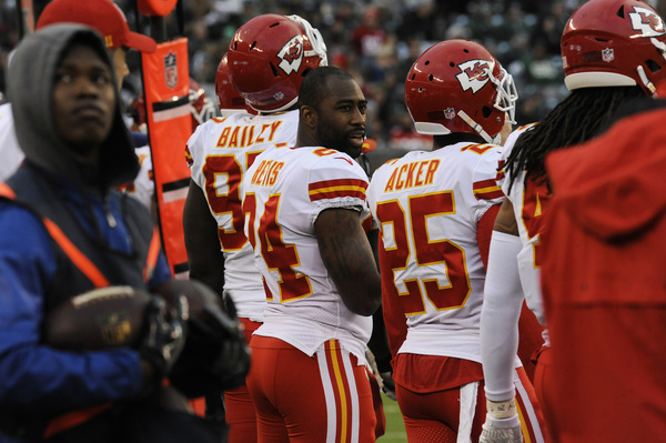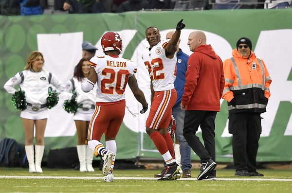 The Chiefs were flagged for defensive holding again on the ensuing two-point conversion attempt. Upset with the call, Chiefs cornerback Marcus Peters picked up the flag and chucked it into the stands. Rookie running back Elijah McGuire then ran in the second attempt to extend the lead to seven points.