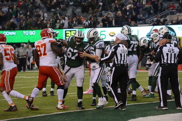 Josh McCown crossed the goal line on a quarterback sneak to give the Jets the lead with 2:10 remaining in regulation, and Gang Green pulled out just its second win since Week 5, 38-31 over the Chiefs on Sunday at MetLife Stadium.