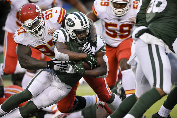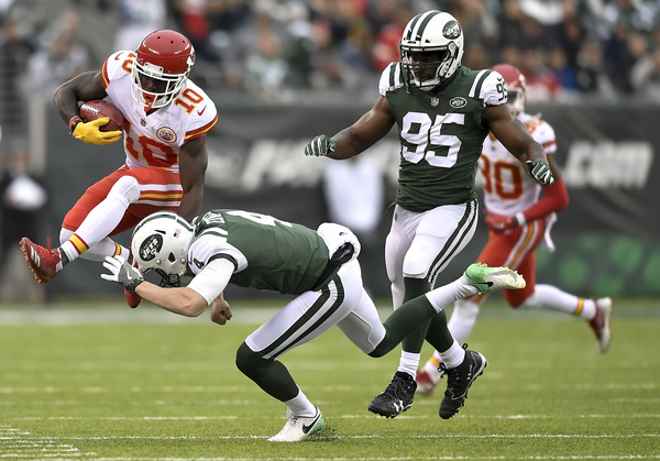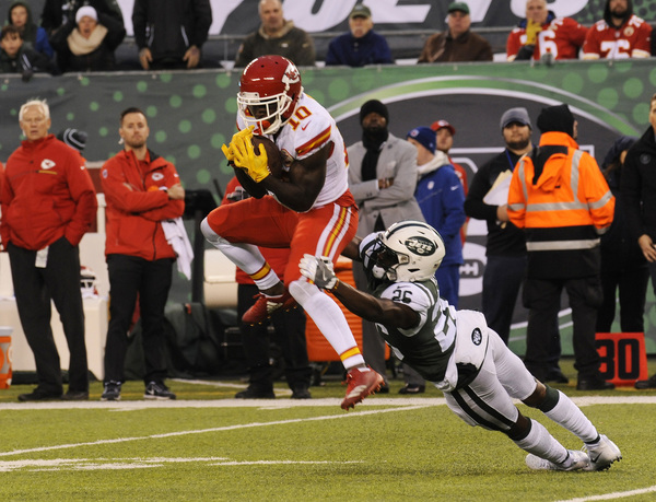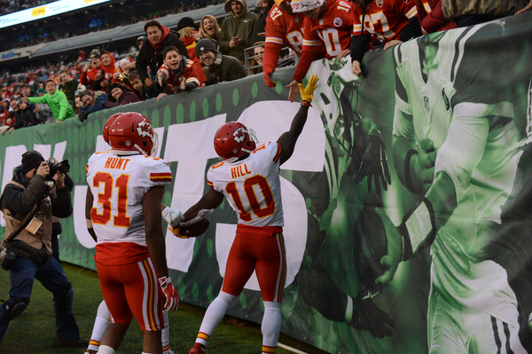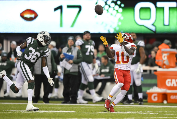 The Jets carried a 27-24 lead into the fourth quarter. They extended that to 30-24 on a Chandler Catanzaro field goal with 11:23 remaining. The Chiefs then jumped ahead when Tyreek Hill caught his second long touchdown of the day, this one 40 yards from Smith. Hill finished with six catches for 185 yards. He also returned a punt 24 yards in the first half.