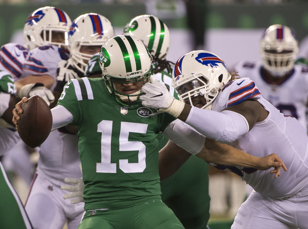 On top of slowing down McCoy, the Gang Green defense hounded Tyrod Taylor (286 passing yards, three touchdowns) with a consistent pass rush all game. The Jets totaled seven sacks, five of which came in the first half, and 11 quarterback hits. Leonard Williams earned his first half-sack of the season, and Muhammad Wilkerson added his second. The Jets entered the game with 11 sacks in eight games.