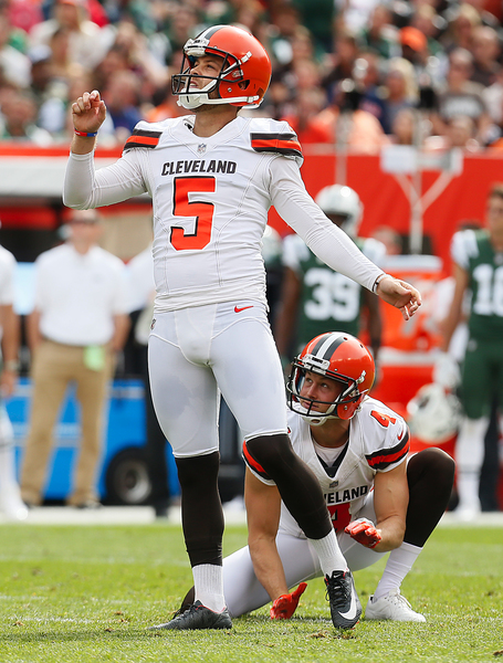 Instead of taking a knee, the Jets, with the ball at their own 29, got just enough yards to set up the long field goal by Catanzaro. McCown scrambled away from pressure and found Robby Anderson for a 10-yard reception with 17 seconds left. McCown then hit Kerley for an 8-yard reception. Kerley scooted out of bounds at the Browns' 39 with one second left. It led to Catanzaro's field goal, which gave the Jets a 3-0 lead.
