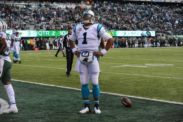 The Panthers took over and moved the ball to midfield before Cam Newton (11 of 28, 168 yards passing, 28 yards and a TD rushing) and Co. faced a 3rd-and-11. Newton misfired, but Mike Pennel was called for roughing the passer on the play, keeping the Panthers' drive alive. Graham Gano later connected on a 45-yard field goal.
