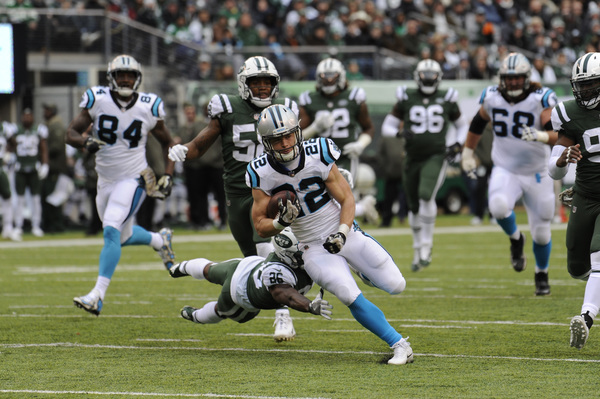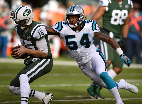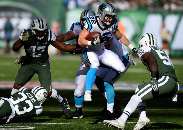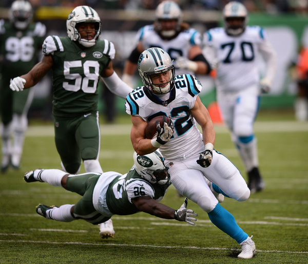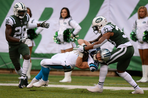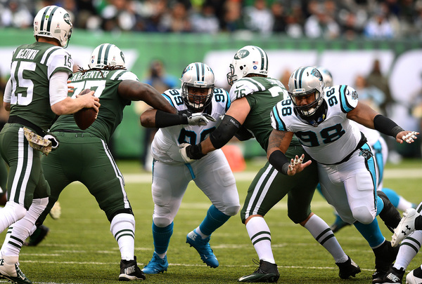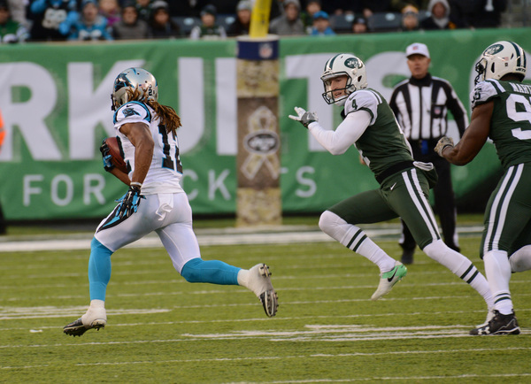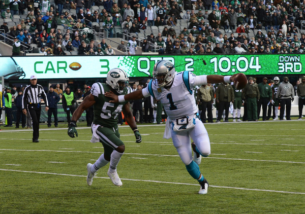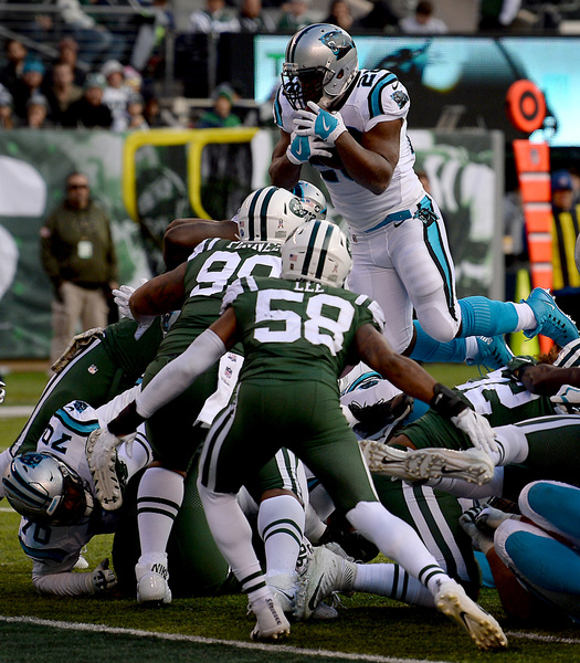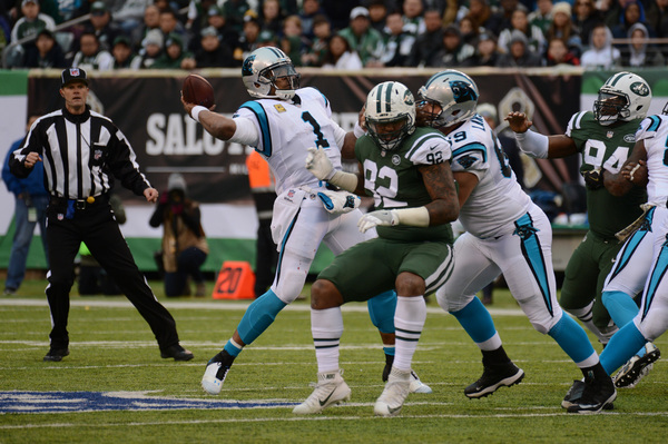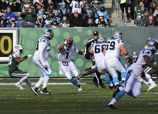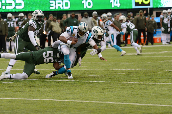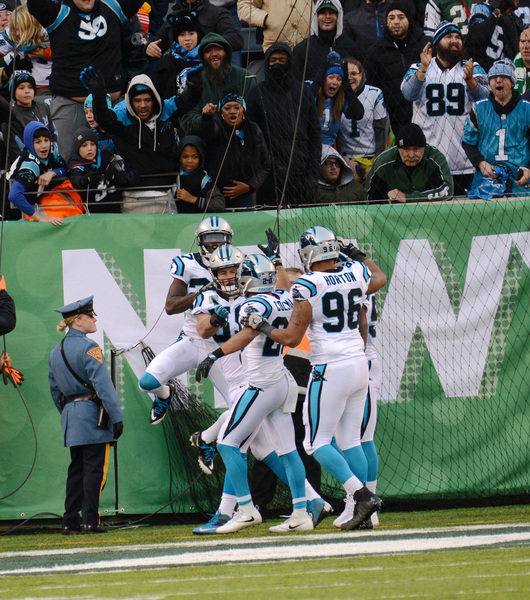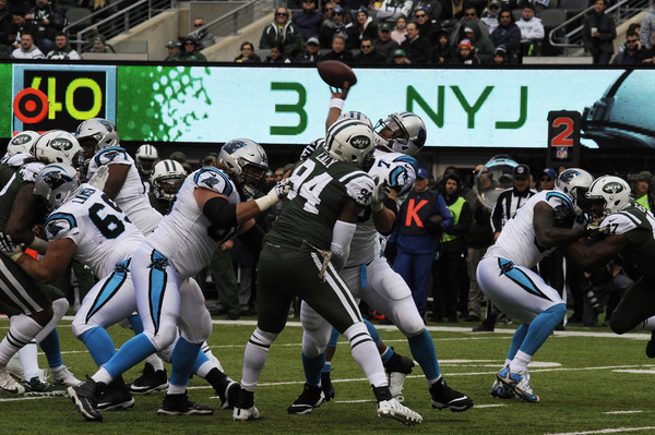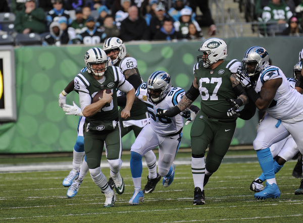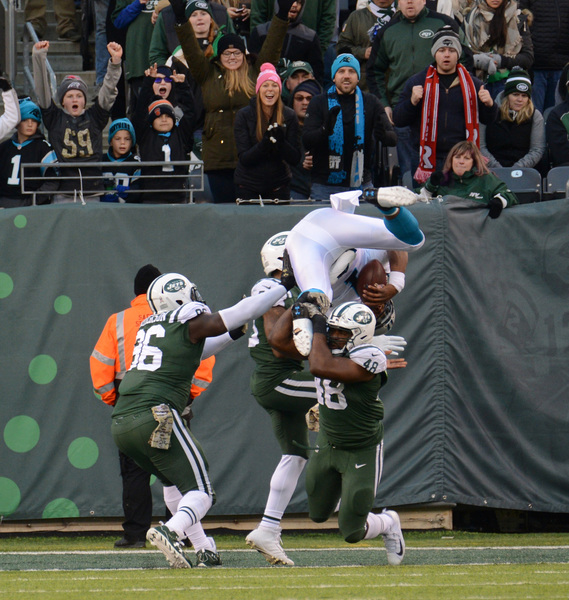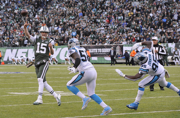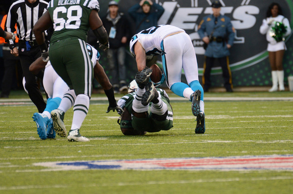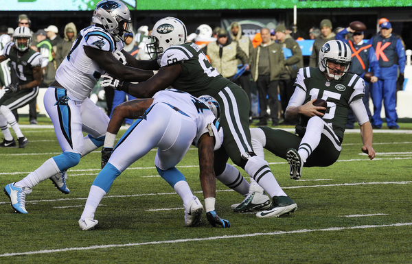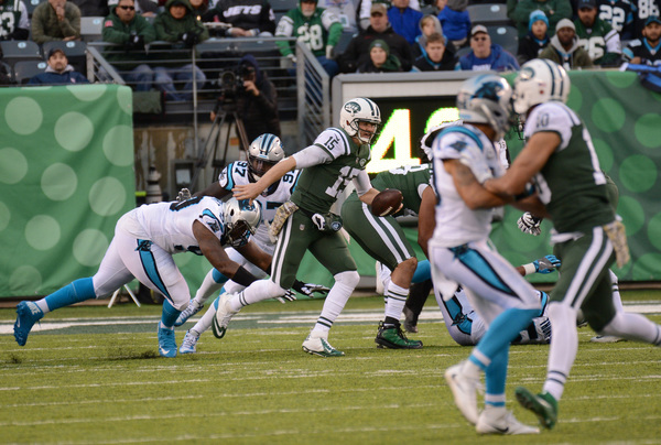On second down, McCown dropped back to pass. Panthers defensive lineman Wes Horton broke through the Jets' offensive line and corralled McCown. The Gang Green quarterback tried to get rid of the ball, but he lost control and fumbled. Linebacker Luke Keuchly picked up the loose rock and returned it 34 yards for the game-winning touchdown.
