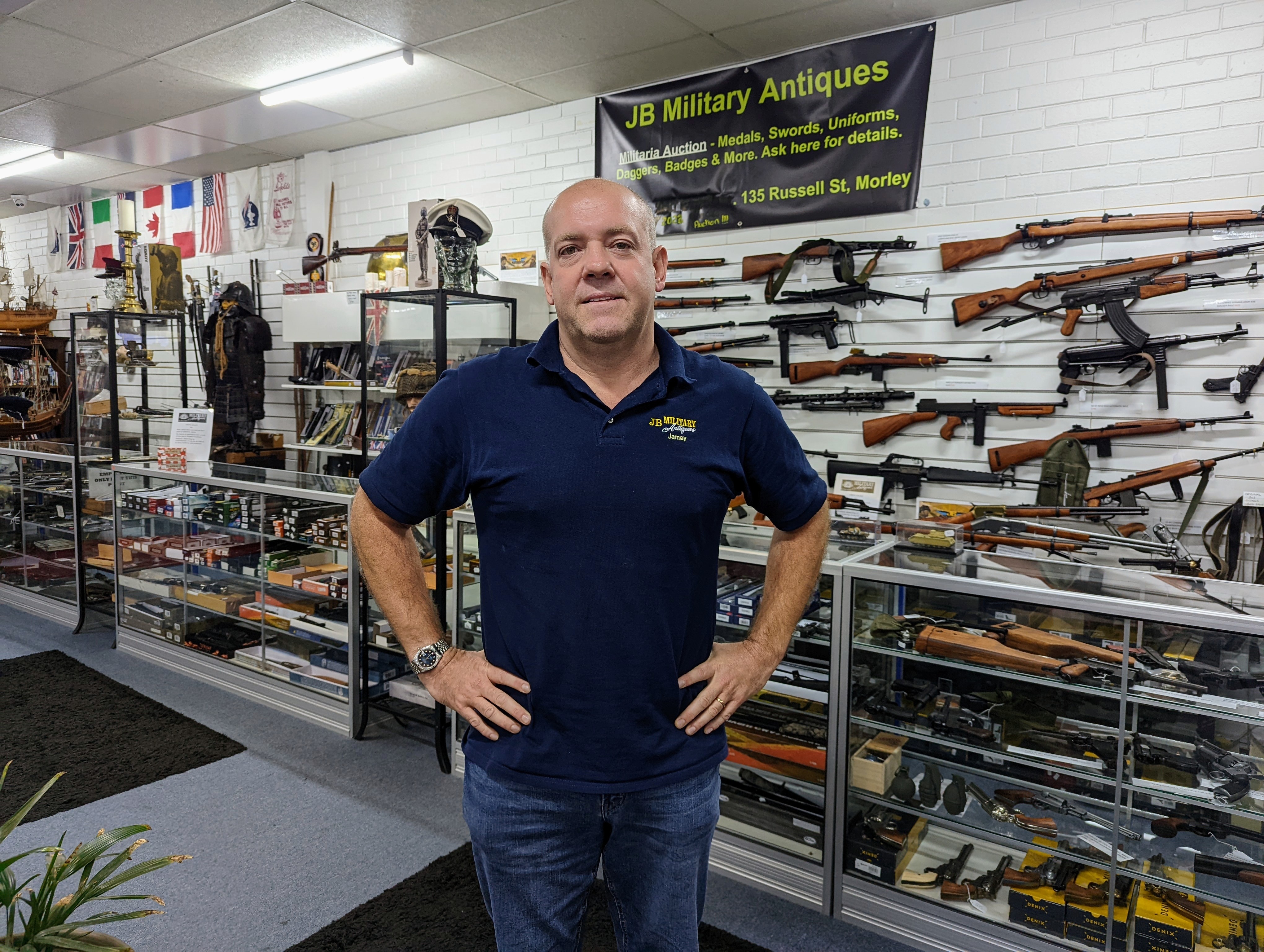 Perth-based JB Military Antiques has drawn outrage from Jewish leaders for its sale of items including daggers and flags bearing the swastika, along with items from the SS uniform.