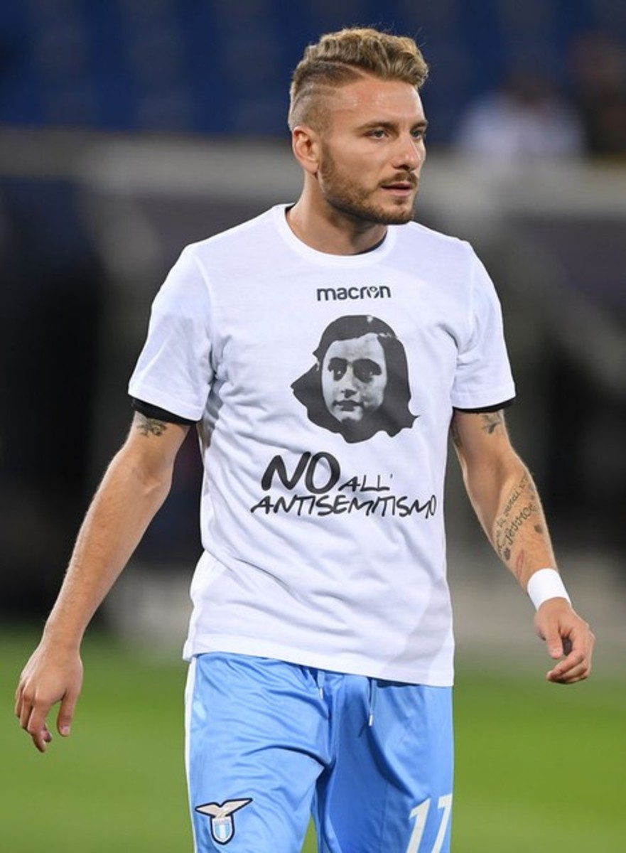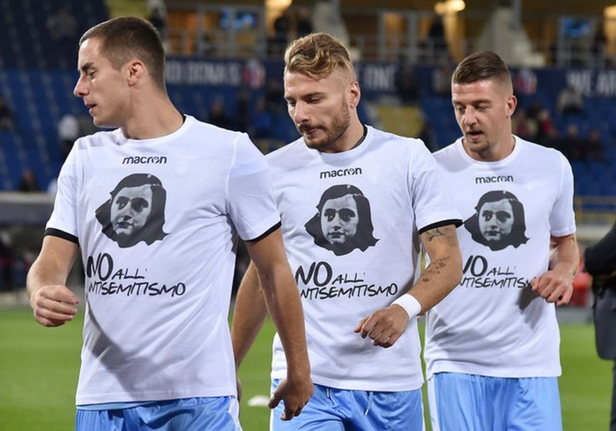 Lazio players wore T-shirts bearing Anne Frank's picture and the slogan "No to Anti-Semitism" over their jerseys at the start of their away game against Bologna. Copies of her diary were handed out to children.